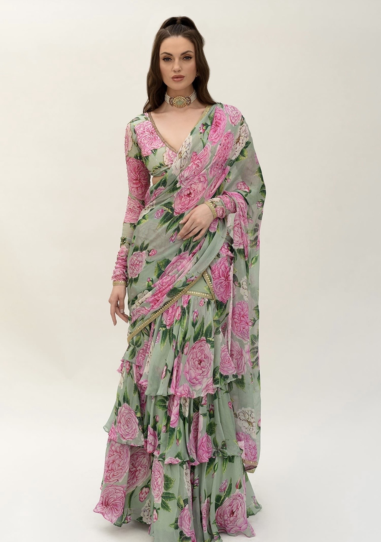 Sanam floral pre-pleated saree